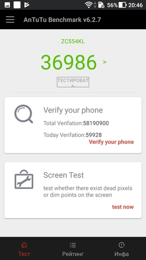 | AnTuTu (v6.x) (больше — лучше) | 36986 | 40277 | 50597 | 56991 | 63146 |