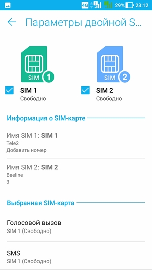 Смартфон умеет поддерживать в режиме активного ожидания обе SIM-карты в 3G/4G одновременно. То есть SIM-карта будет работать в 3G для голосовой связи, даже если для передачи данных в 4G назначена другая карта. Интерфейс позволяет выбрать для голосовых звонков и SMS определенную SIM-карту заранее. Работают карты в режиме Dual SIM Dual Standby, радиомодем здесь один.