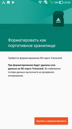 Есть возможность расширения встроенной памяти за счет установки карт microSD, и для этого не придется вынимать одну из SIM-карт. На практике наша проверочная карта Transcend Premium microSDXC UHS-1 объемом 128 ГБ уверенно распозналась устройством. Устанавливать и переносить приложения на карту памяти нельзя, аппарат предлагает отформатировать карту только в качестве хранилища для медиафайлов.