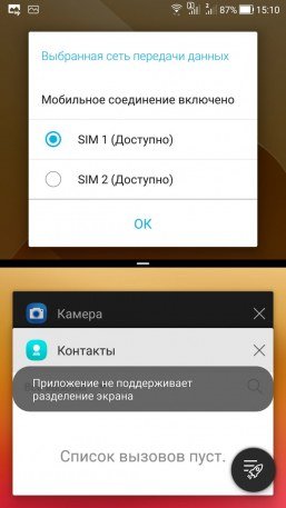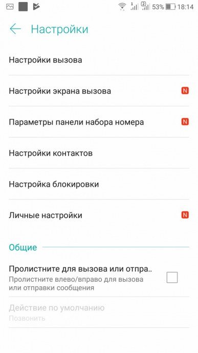 Телефонное приложение поддерживает Smart Dial, то есть во время набора телефонного номера сразу осуществляется и поиск по первым буквам в контактах. Способы сортировки и отображения контактов стандартны для интерфейса Android, сортировка контактов возможна по фамилии или имени, то же самое и с отображением контакта звонящего. Можно воспользоваться расширенными настройками с применением спам-фильтра, смарт-поиска по контактам, защиты паролем, связки дублирующих записей и много другого с помощью программы Дозвонщик ZenUI, которую можно скачивать и обновлять через Google Play.