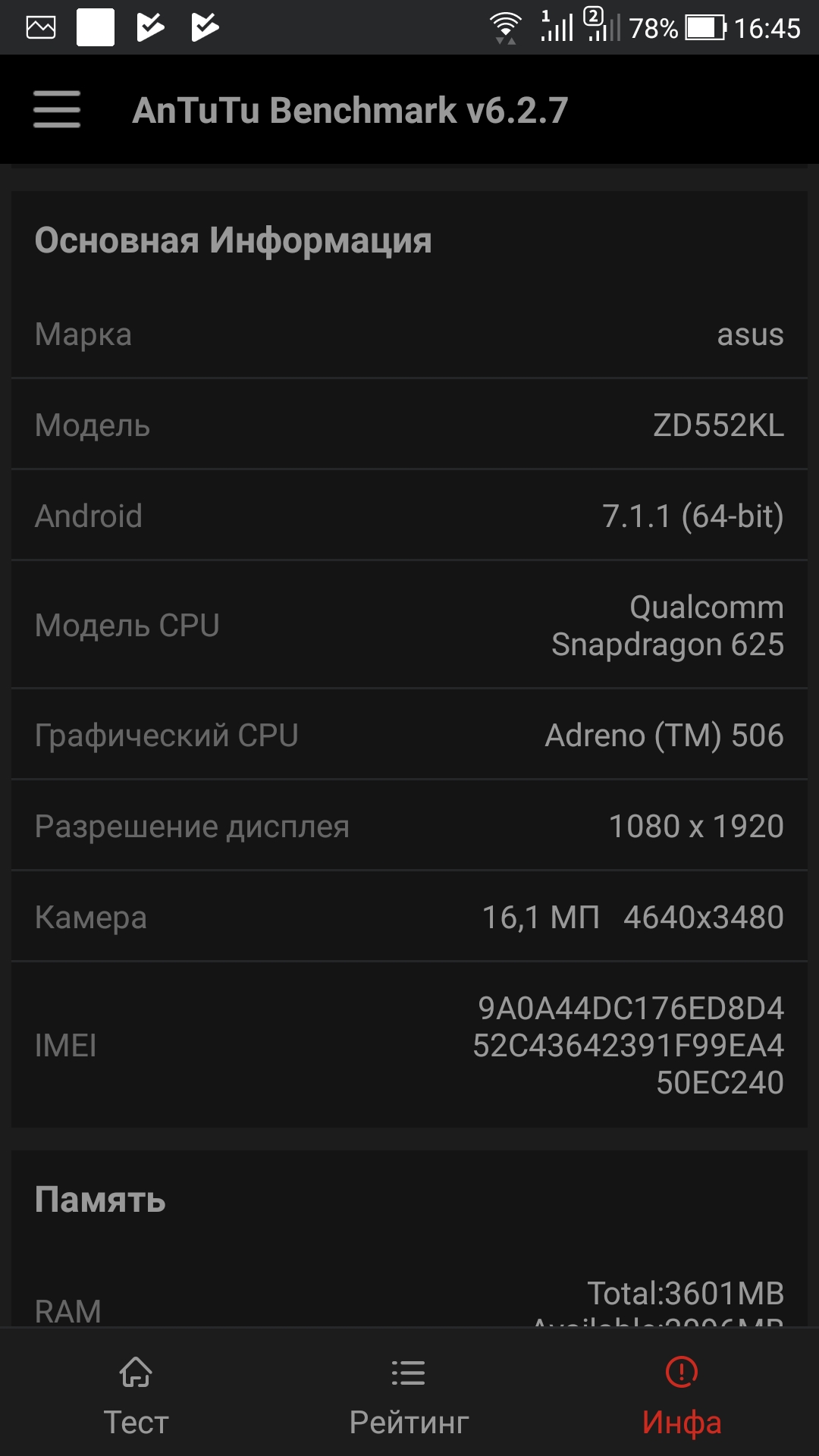 В разговорном динамике голос знакомого собеседника хорошо узнаваем, посторонних шумов нет, звук натуральный, запас громкости достаточен. Второй микрофон служит для работы системы шумоподавления. Поддерживается VoLTE. А вот вибровызов, на удивление, очень слабый, у обычной модели Asus ZenFone 4 он не в пример мощнее и ощутимее.