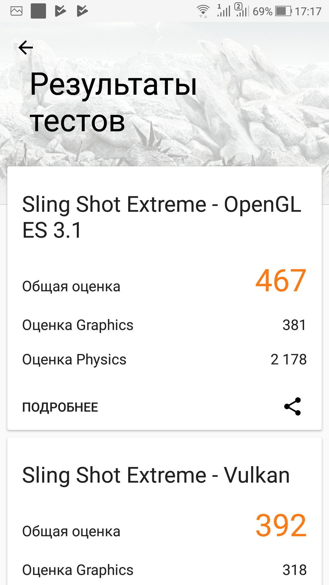| 3DMark Ice Storm Sling Shot ES 3.1 (больше — лучше) | 467 | 821 | 463 | 671 | 421 |