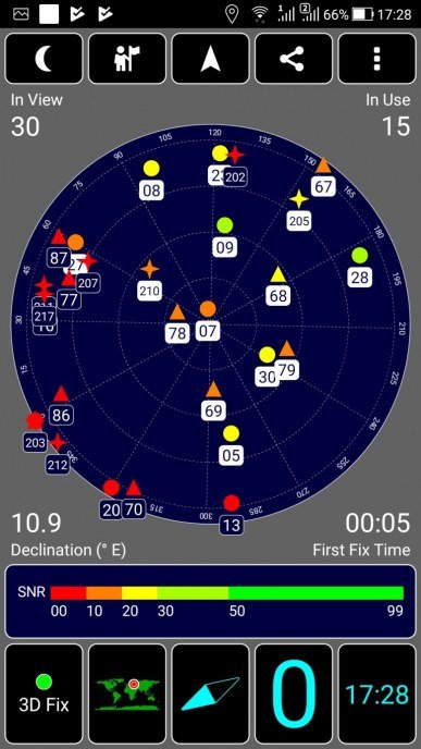 Навигационный модуль работает с GPS (с A-GPS), с отечественной Глонасс и с китайской Beidou. Первые спутники при холодном старте обнаруживаются быстро, в течение первой минуты. Магнитный компас, необходимый для навигационных программ, в аппарате имеется.
