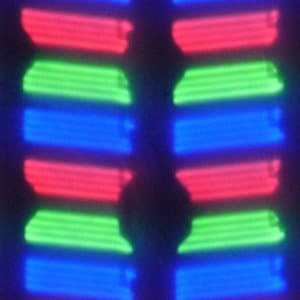 В данном смартфоне используется матрица типа IPS. Микрофотографии демонстрируют типичную для IPS структуру субпикселей: