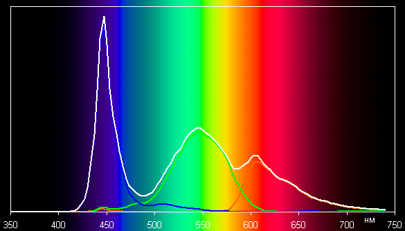 Спектры показывают, что светофильтры матрицы в умеренной степени подмешивают компоненты друг к другу: