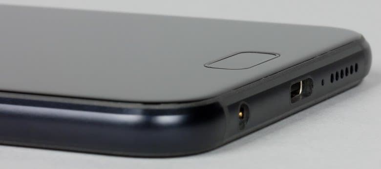 На нижнем торце собраны все элементы, обычно распределяемые в смартфонах по двум торцам: здесь можно найти и 3,5-миллиметровый разъем под миниджек наушников, и отверстие разговорного микрофона, и выход основного динамика, и разъем USB Type-C.