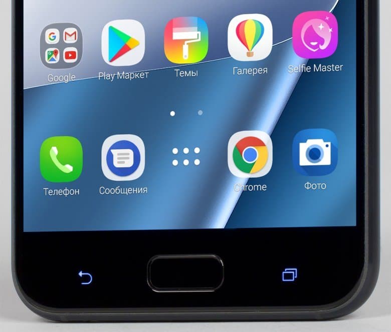 Площадка дактилоскопического датчика установлена спереди под экраном, она не имеет под собой механической кнопки, это всего лишь углубление в стекле. Сканер отпечатков пальцев работает без особых претензий, распознавание происходит быстро, хотя порой бывают и неудачные попытки авторизации.
