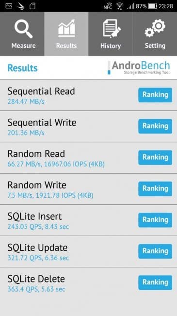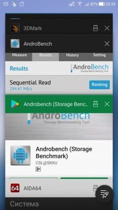 Результаты теста AndroBench на скорость работы с памятью: