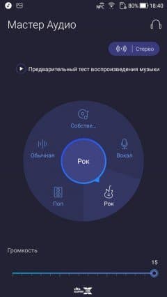 Для прослушивания музыки используется штатный плеер Google Music, для настройки параметров аудиосистемы служит специальное приложение AudioWizard. Разговорный динамик этого смартфона работает в паре с основным для озвучивания музыки, игр и пр., создавая стереоэффект. Звучат динамики громко и чисто, претензий по звуку нет. Два микрофона с функцией шумоподавления устраняют окружающие шумы для лучшего качества голосовой связи, а также во время записи видео и потоковой передачи голосовых данных в реальном времени. Кроме того, при подключенных наушниках используется технология пространственного звучания DTS Headphone:X и поддерживается аудиофильский формат 24 бита/192 кГц. В наушниках звук тоже яркий, чистый и насыщенный, запас громкости велик.