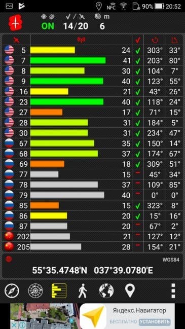 Навигационный модуль работает с GPS (с A-GPS), с отечественной Глонасс и с китайской Beidou. Первые спутники при холодном старте обнаруживаются в течение десятков секунд, точность позиционирования на территории московского региона не идеальная. Имеется встроенный датчик магнитного поля для функционирования компаса.