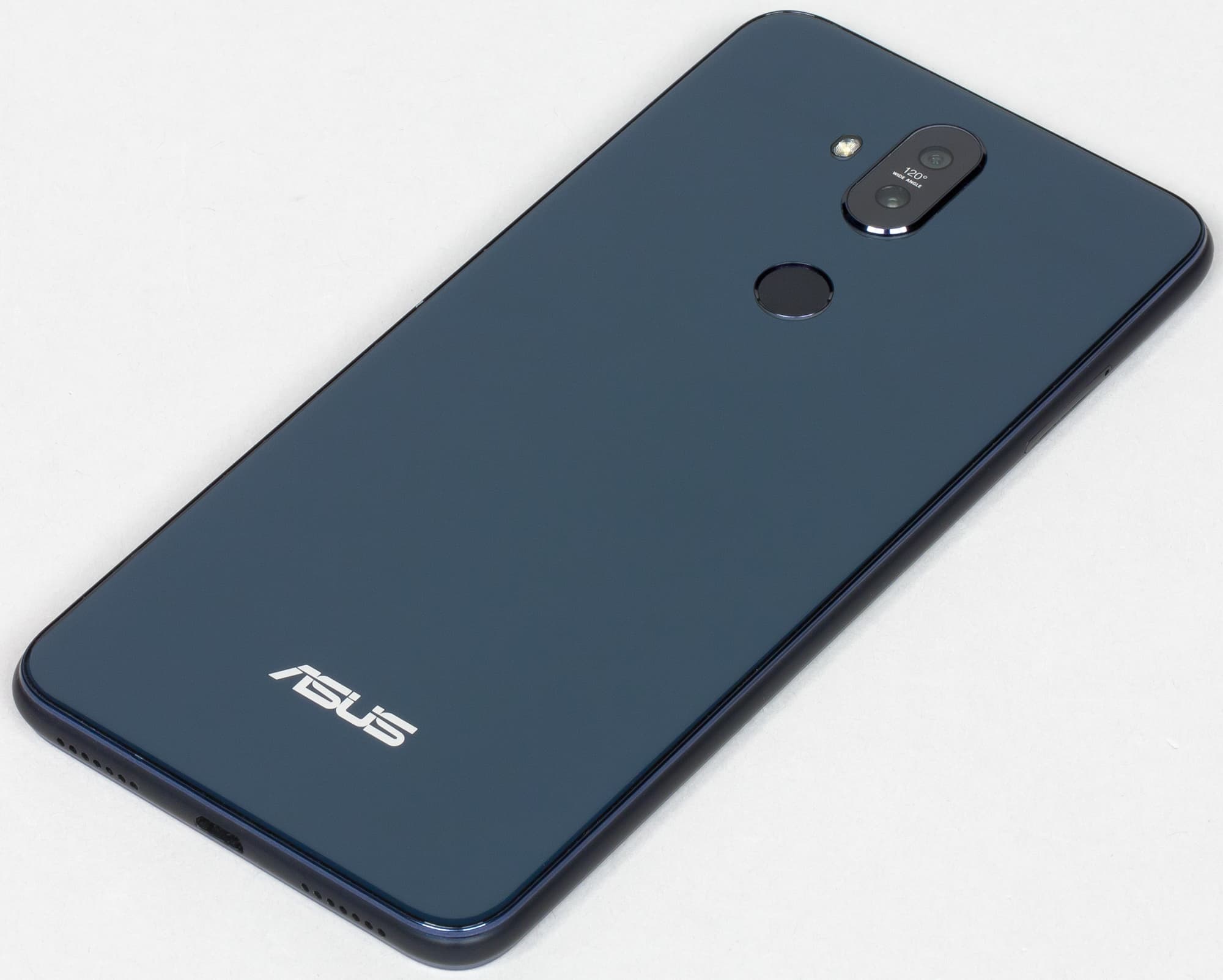 Тем не менее, как и у Zenfone 5, тыльная сторона здесь покрыта стеклом. На сплошной благородно-черной глянцевой поверхности выделяется лишь вертикальный блок с камерами, вспышка и матовый сканер отпечатков пальцев.
