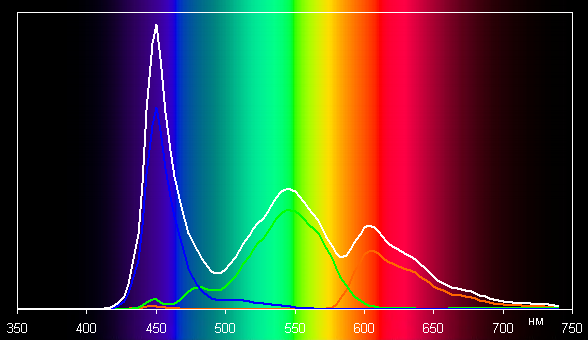 Спектры показывают, что светофильтры матрицы в умеренной степени подмешивают компоненты друг к другу: