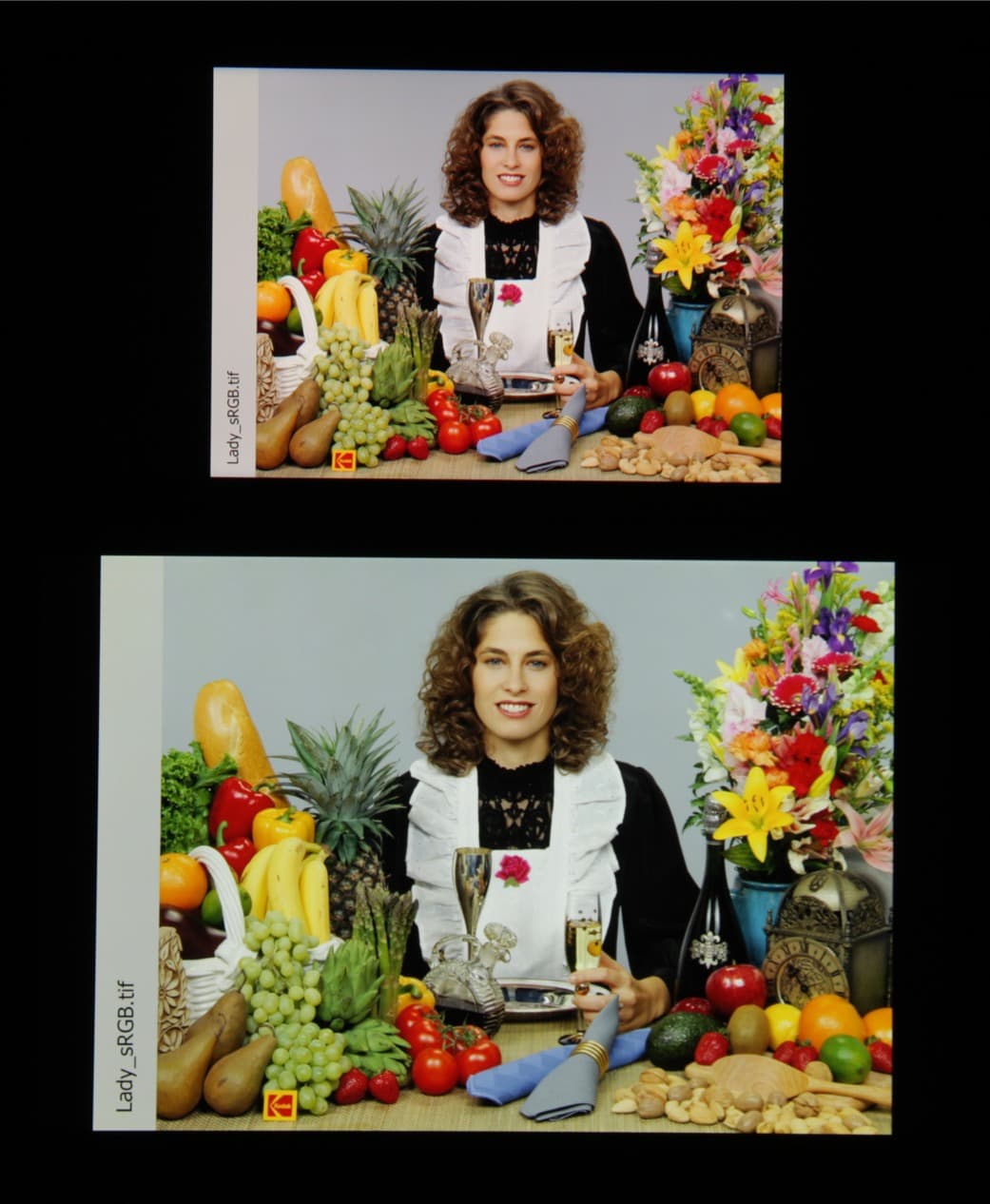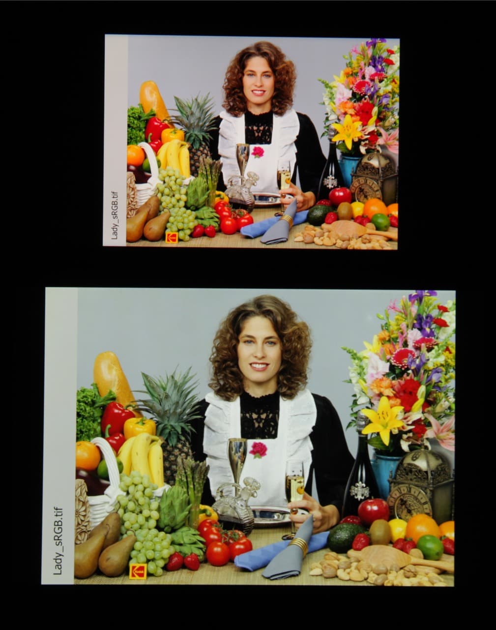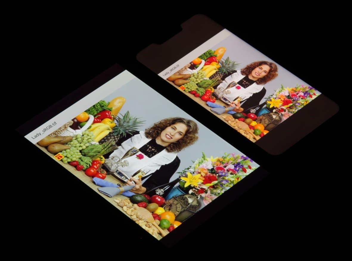 Они типичные для многих топовых мобильных устройств. По всей видимости, в этом экране используются светодиоды с синим излучателем и зеленым и красным люминофором (обычно — синий излучатель и желтый люминофор), что в сочетании со специальными светофильтрами матрицы и позволяет получить широкий цветовой охват. Да, и в красном люминофоре, видимо, используются так называемые квантовые точки. К сожалению, в итоге цвета изображений — рисунков, фотографий и фильмов, — ориентированных на пространство sRGB (а таких подавляющее большинство), имеют неестественную насыщенность. Особенно это заметно на узнаваемых оттенках, например на оттенках кожи. Результат приведен на фотографии выше.