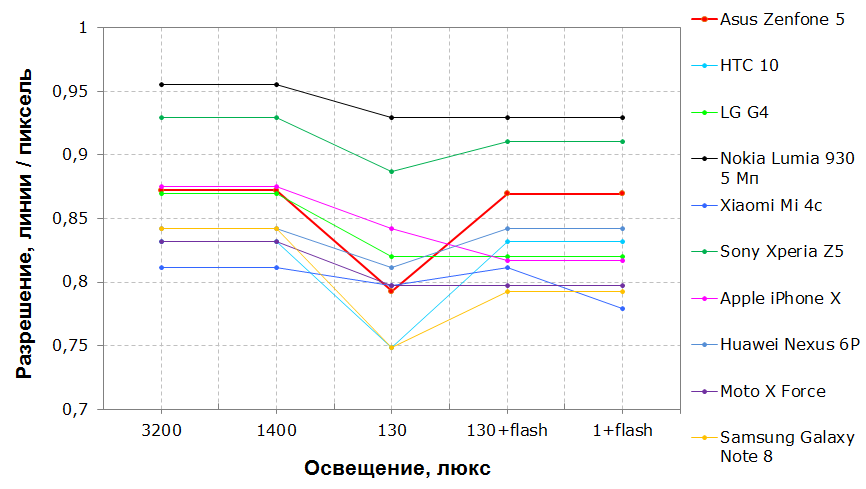 Модуль напоминает камеру iPhone X, и даже работа программы местами похожа. То же можно сказать и по лабораторному тесту: при свете камеры работают одинаково хорошо, в сумраке смартфон Asus справляется чуть хуже, но его выручает мощная вспышка.