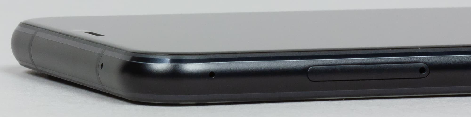 Сверху — только отверстие микрофона, а на левой боковой грани — слот для SIM-карт и microSD. Вы можете установить либо одну карту Nano-SIM и одну microSD, либо две Nano-SIM.