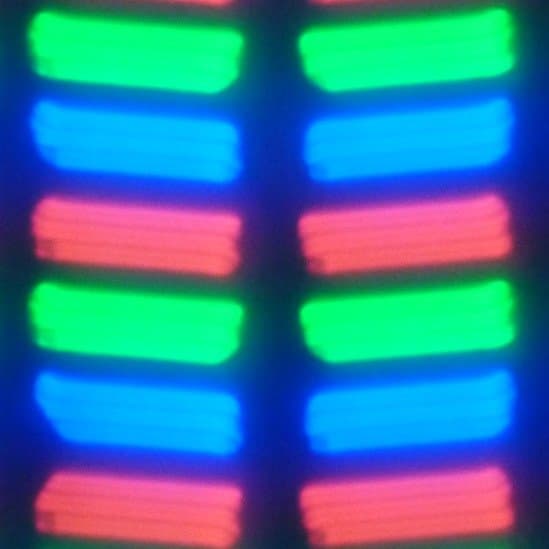 В данном экране используется матрица типа IPS. Микрофотографии демонстрируют типичную для IPS структуру субпикселей: