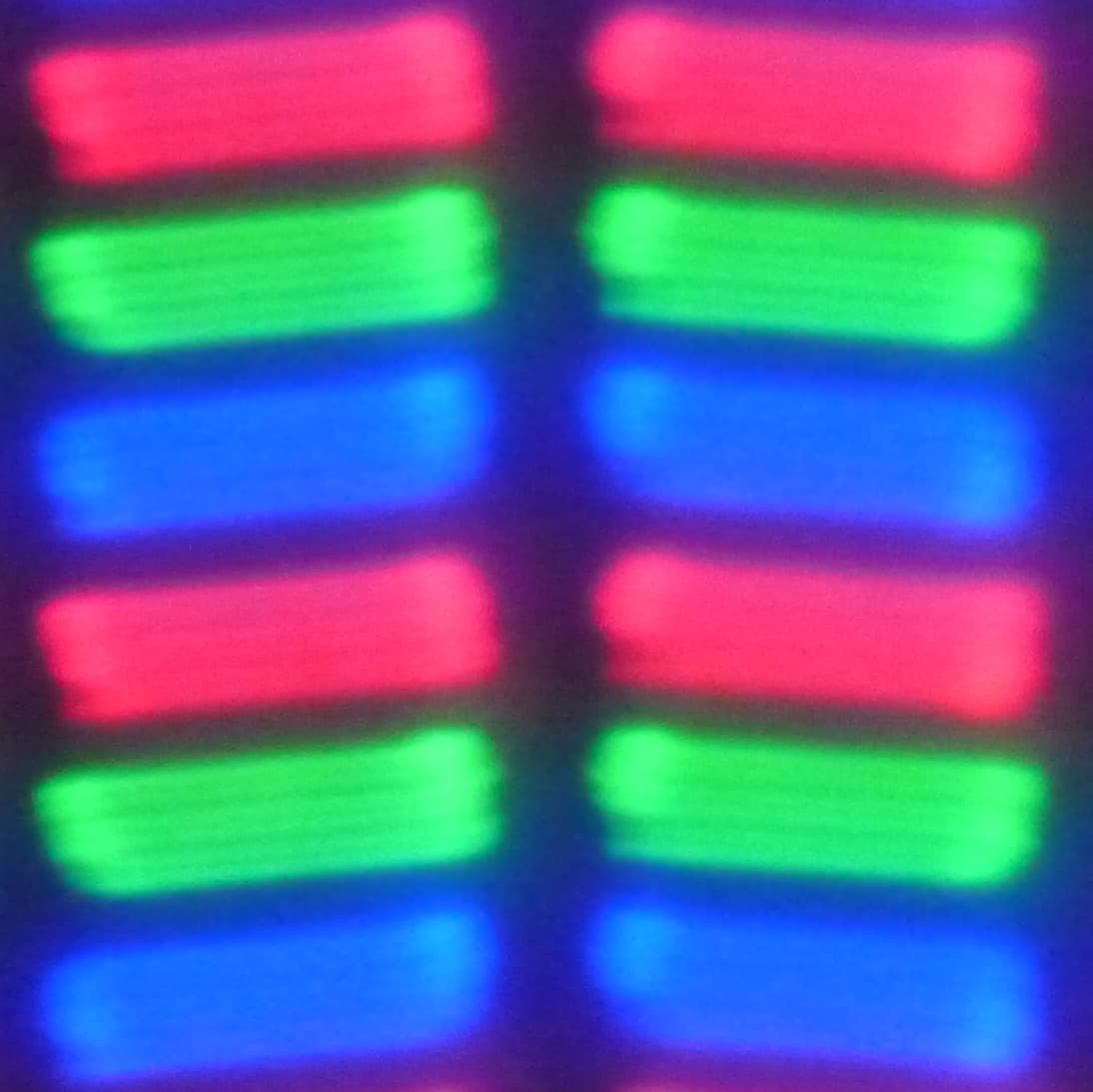 В данном экране используется матрица типа IPS. Микрофотографии демонстрируют типичную для IPS структуру субпикселей: