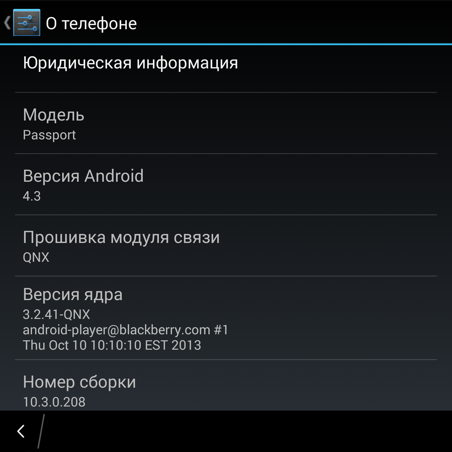 Среди них есть и весьма полезное: Android Settings. Это возможность настройки смартфона BlackBerry с помощью стандартного меню Android. Это же приложение позволяет нам узнать, какая именно версия Android здесь используется.