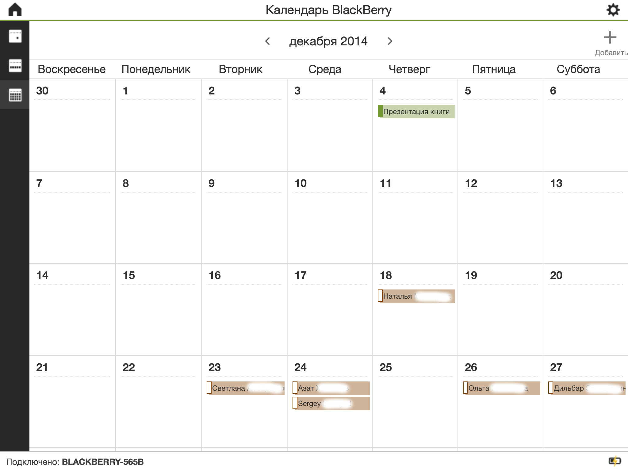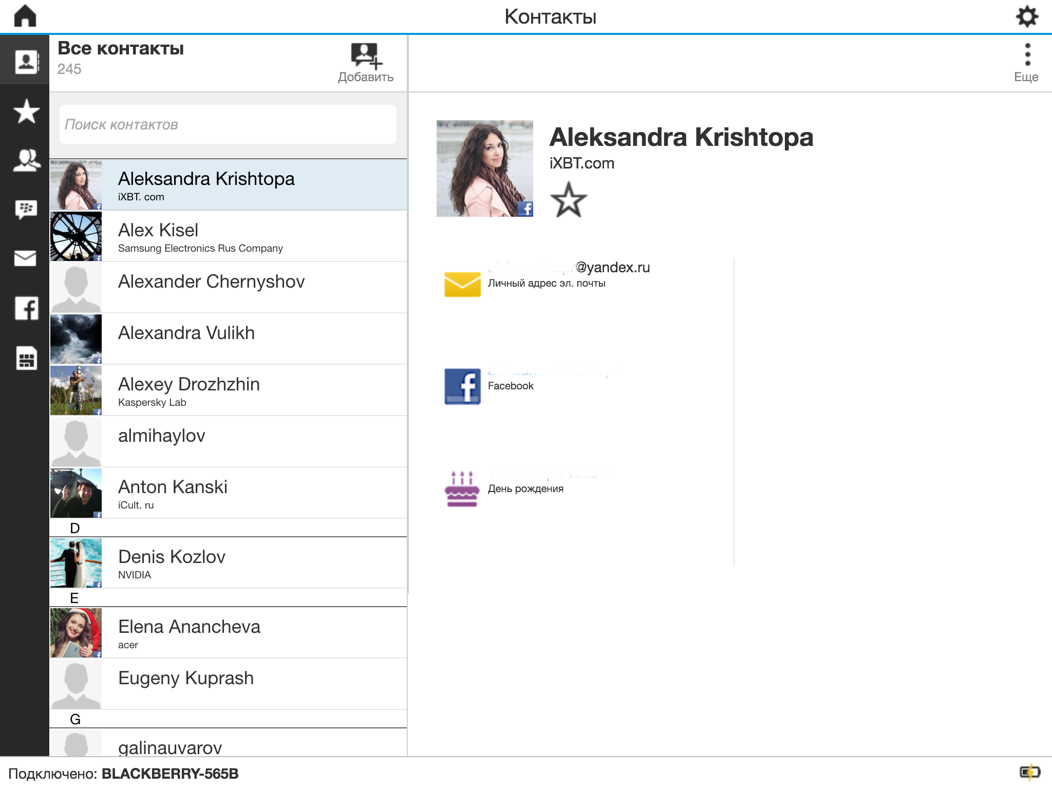 То есть можно говорить о едином интерфейсе BlackBerry Blend. Посмотрим на контакты и календарь.