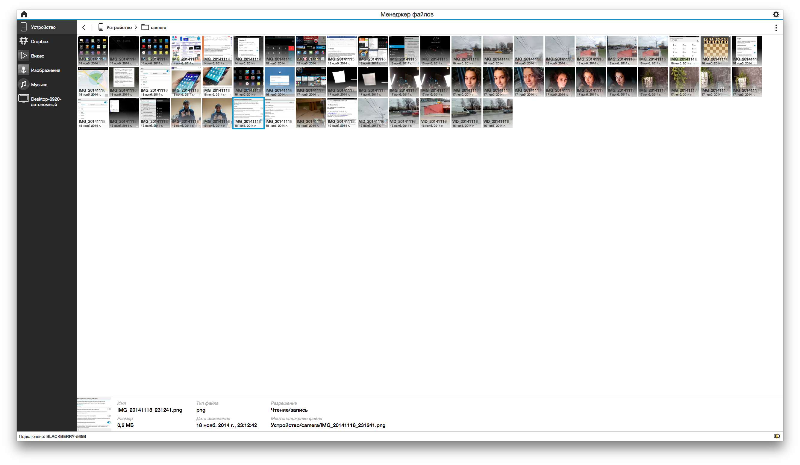 В меню слева можно выбрать изображения, видео, музыку, доступ к папке Dropbox на смартфоне. Разумеется, файлы можно не только посмотреть, но и скачать на компьютер.