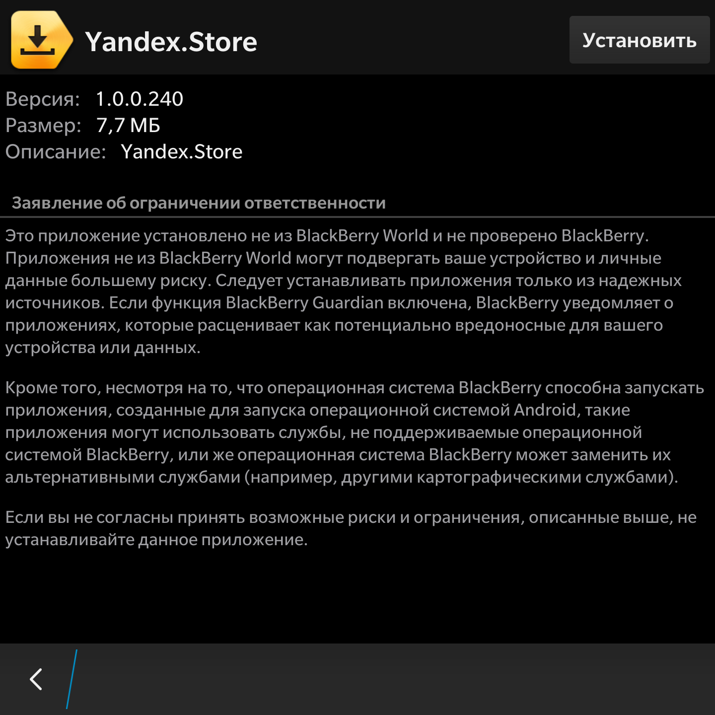 С Яндексом ситуация, в общем-то, аналогична Amazon Appstore, с той только разницей, что ассортимент различается. В частности, из Yandex.Store можно поставить сервисы Яндекса, что очень актуально для российских пользователей. На BlackBerry Passport они работают вполне корректно.