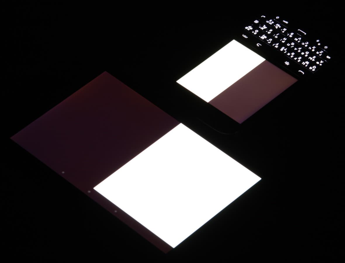 Экран у BlackBerry Classic заметно темнее (яркость по фотографиям 93 против 111 у Nexus 7). Двоение отраженных объектов в экране BlackBerry Classic очень слабое, это свидетельствует о том, что между слоями экрана (конкретнее между внешним стеклом и поверхностью ЖК-матрицы) нет воздушного промежутка (экран типа OGS — One Glass Solution). За счет меньшего числа границ (типа стекло-воздух) с сильно различающимися коэффициентами преломления такие экраны лучше смотрятся в условиях сильной внешней засветки, но вот их ремонт в случае потрескавшегося внешнего стекла обходится гораздо дороже, так как менять приходится экран целиком. На внешней поверхности экрана есть специальное олеофобное (жироотталкивающее) покрытие (эффективное, даже чуть лучше, чем у Nexus 7), поэтому следы от пальцев удаляются существенно легче, а появляются с меньшей скоростью, чем в случае обычного стекла.