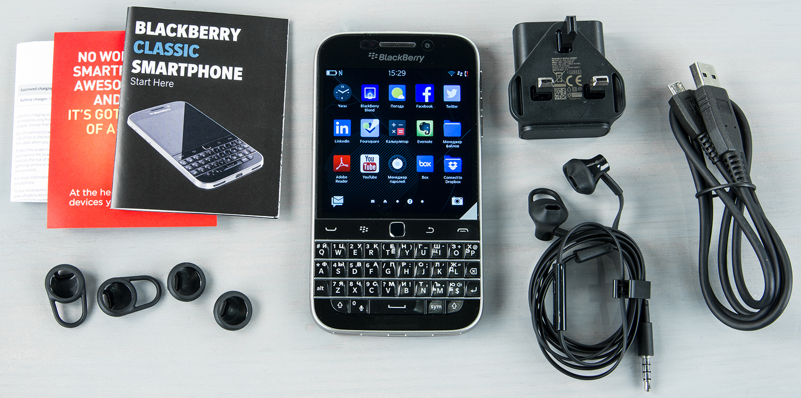 Отметим, что в случае с BlackBerry Passport набор был аналогичным, за одним исключением: в комплекте с Classic идет металлический ключик для открывания слотов. Но об этом мы расскажем далее.