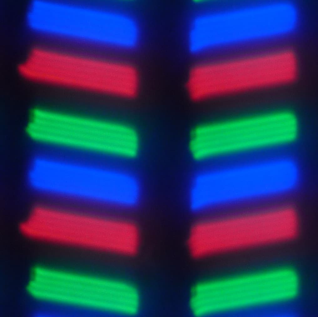 В данном смартфоне используется матрица типа IPS. Микрофотографии демонстрируют типичную для IPS структуру субпикселей: