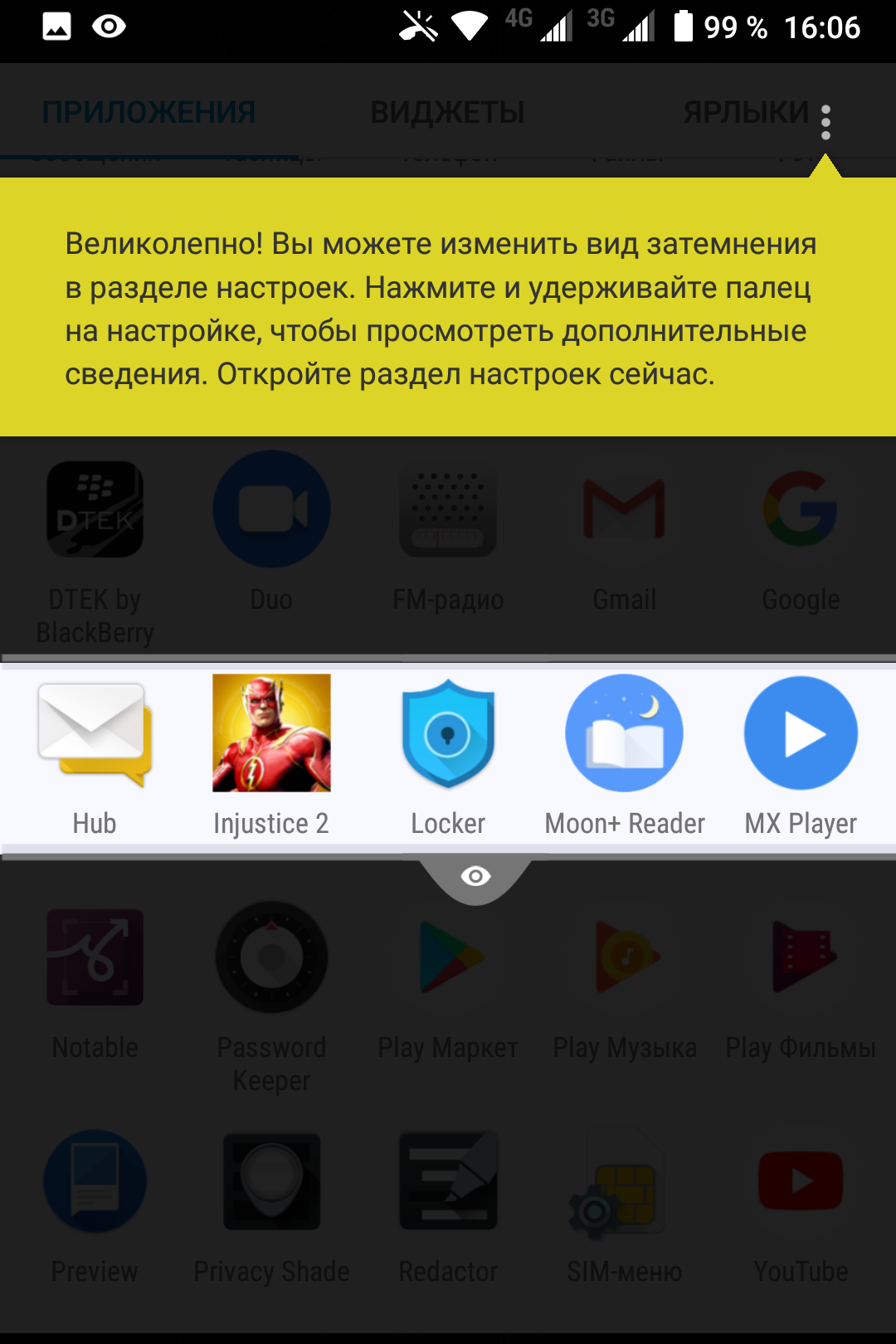 В настройках можно скорректировать цветовой баланс и отдельно уменьшить интенсивность синей компоненты:
