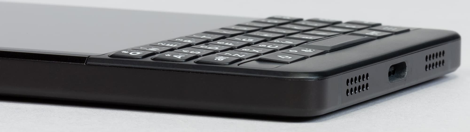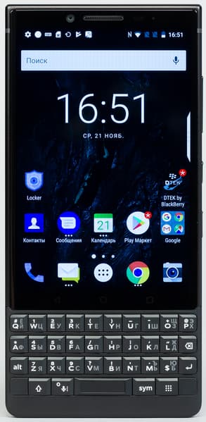 QWERTY/ЙЦУКЕН-клавиатура в нижней части «съедает» огромную часть передней панели, поэтому экранчик получился, по теперешним меркам, очень маленький — всего 4,5 дюйма. Сама клавиатура оснащена 35 физическими клавишами, расположенными в четыре ряда. Как и в предыдущей модели, клавиши поддерживают сенсорный ввод, вместе они работают на манер тачпада, по которому можно выписывать жесты — например, пролистывать страницы свайпом. Клавиши получили матовое покрытие и увеличенное межклавишное расстояние, а их высота стала больше на 20%. Кнопки имеют специфичную форму, четко тактильно отделяются друг от друга — над этим разработчики хорошо потрудились. Ход клавиш — в меру упругий, но не жесткий. Но главное — это улучшенная эргономика: у обновленной модели клавиатура поднялась выше, поэтому теперь не приходится удерживать вес всего аппарата, упираясь буквально кончиками пальцев в нижний торец. BlackBerry Key2 располагается в руках гораздо более комфортно, удерживается более надежно, и для манипулирования клавишами с помощью больших пальцев теперь больше пространства.