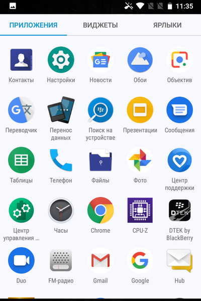 В качестве программной платформы используется ОС Android версии 8.1, практически «чистый» интерфейс Android без собственной оболочки, но дополненный специфическими функциями и приложениями BlackBerry.