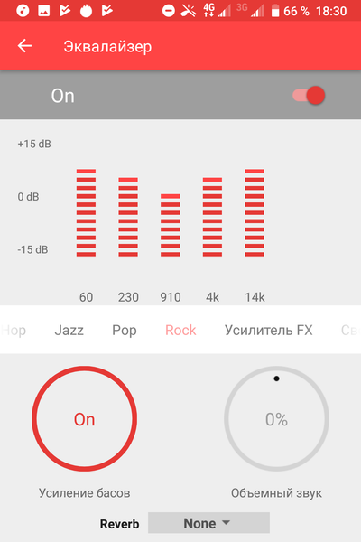 Про звуковые возможности BlackBerry Key2 сказать особенно нечего. Звук среднего качества, достаточно чистый, запас громкости невелик. В качестве музыкального проигрывателя используется штатный Play Music с пятиполосным эквалайзером. С его помощью звучание в наушниках можно сделать более ярким, эквалайзер однозначно стоит использовать.