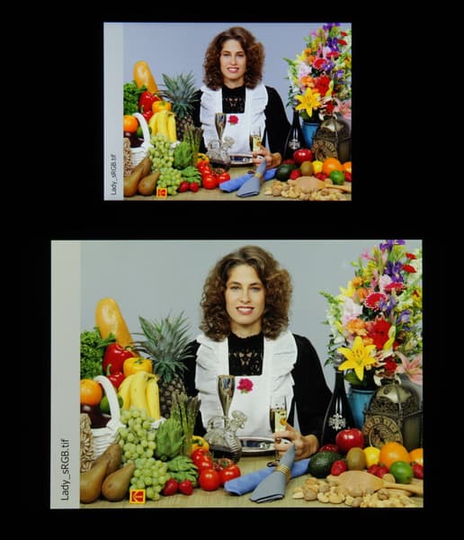 Цвета на экране BlackBerry Key2 имеют насыщенность чуть выше естественной (кожа излишне красноватая), цветовой баланс у Nexus 7 и у тестируемого экрана различается.
