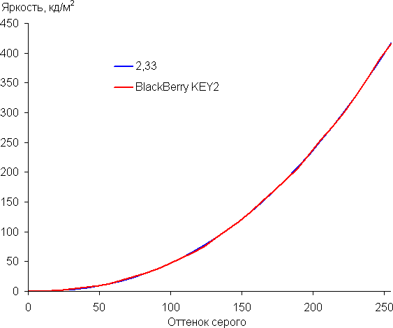Контрастность (примерно в центре экрана) высокая — порядка 1100:1. Время отклика при переходе черный-белый-черный равно 20 мс (11 мс вкл. + 9 мс выкл.). Переход между полутонами серого 25% и 75% (по численному значению цвета) и обратно в сумме занимает 31 мс. Построенная по 32 точкам с равным интервалом по численному значению оттенка серого гамма-кривая не выявила завала ни в светах, ни в тенях. Показатель аппроксимирующей степенной функции равен 2,33, что немного выше стандартного значения 2,2. При этом реальная гамма-кривая мало отклоняется от степенной зависимости: