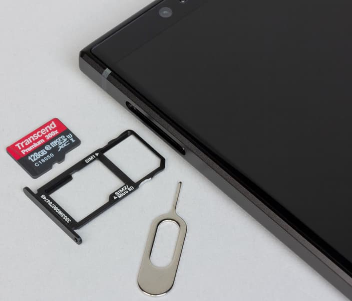 Разъем для карточек привычно гибридный, в него можно одновременно установить две Nano-SIM-карты либо заменить одну на карту памяти. Горячей замены карточек нет, смартфон самостоятельно перезагружается при обнаружении новой карты.
