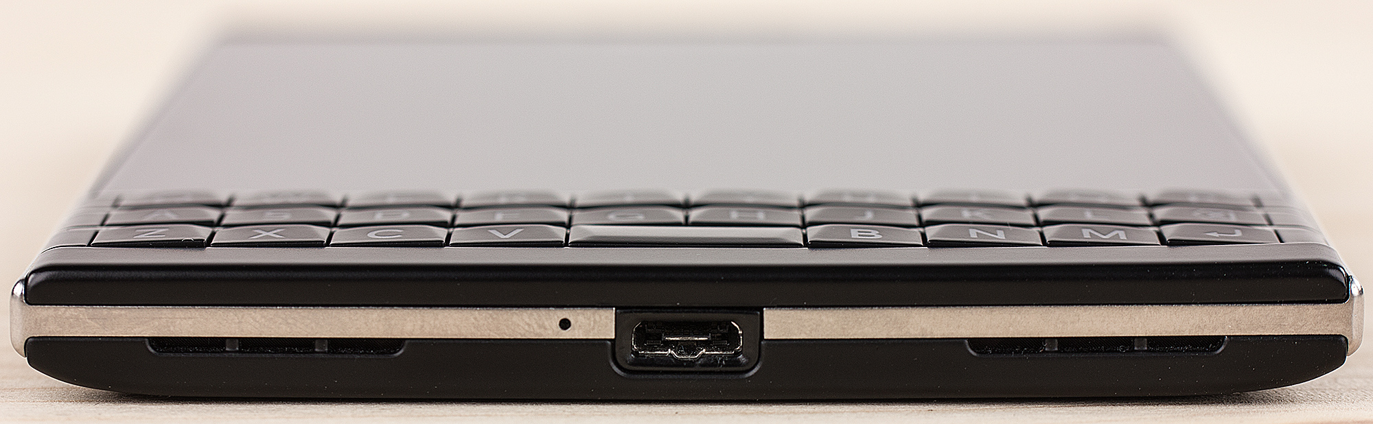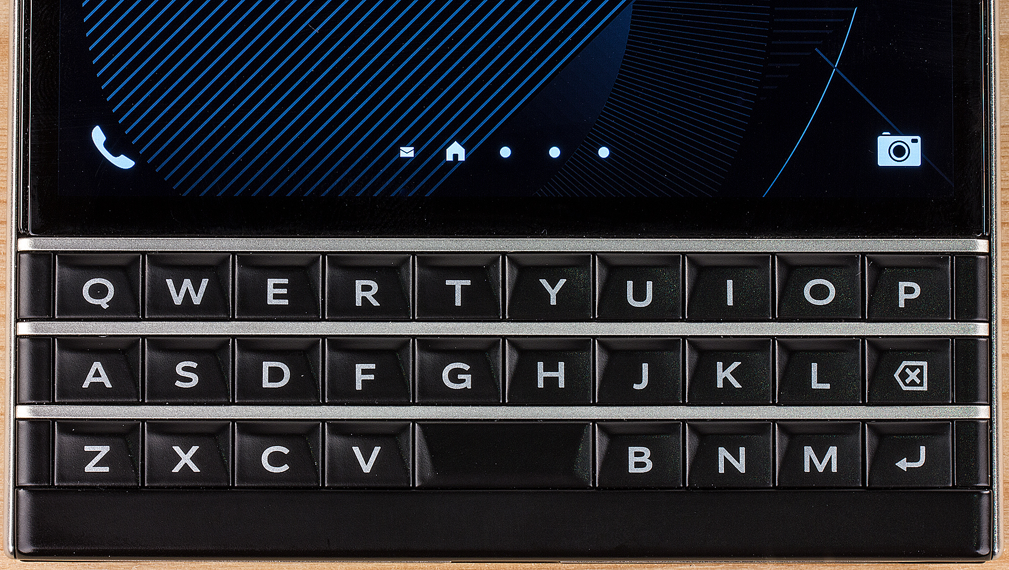 Впрочем, ширина делает крайне неудобным (почти невозможным) набор текста одной рукой. К этому прибавляются и некоторые особенности клавиатуры, затрудняющие привыкание к набору. У всех предыдущих кнопочных смартфонов BlackBerry (включая и последний Q10) было четыре ряда кнопок с буквами и цифрами. На Passport только три ряда: «потеряли» alt, оба shift, sym и $ (в русифицированных версиях там была буква «ю»). Ниже фото клавиатуры BlackBerry Q10 (сверху) и BlackBerry Passport (снизу). (Пропорции отражены приблизительно, не точно).
