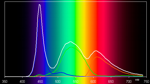 Спектры показывают, что светофильтры матрицы в умеренной степени подмешивают компоненты друг к другу: