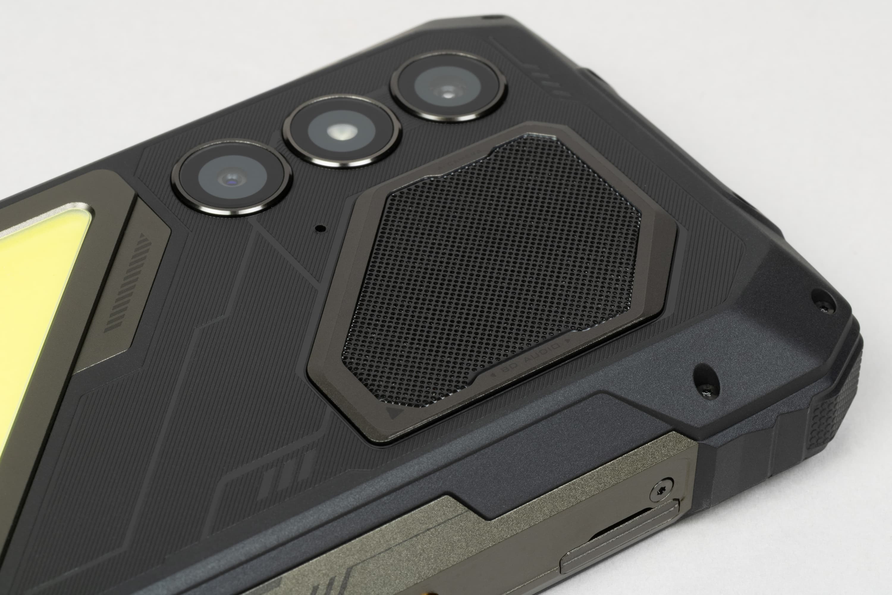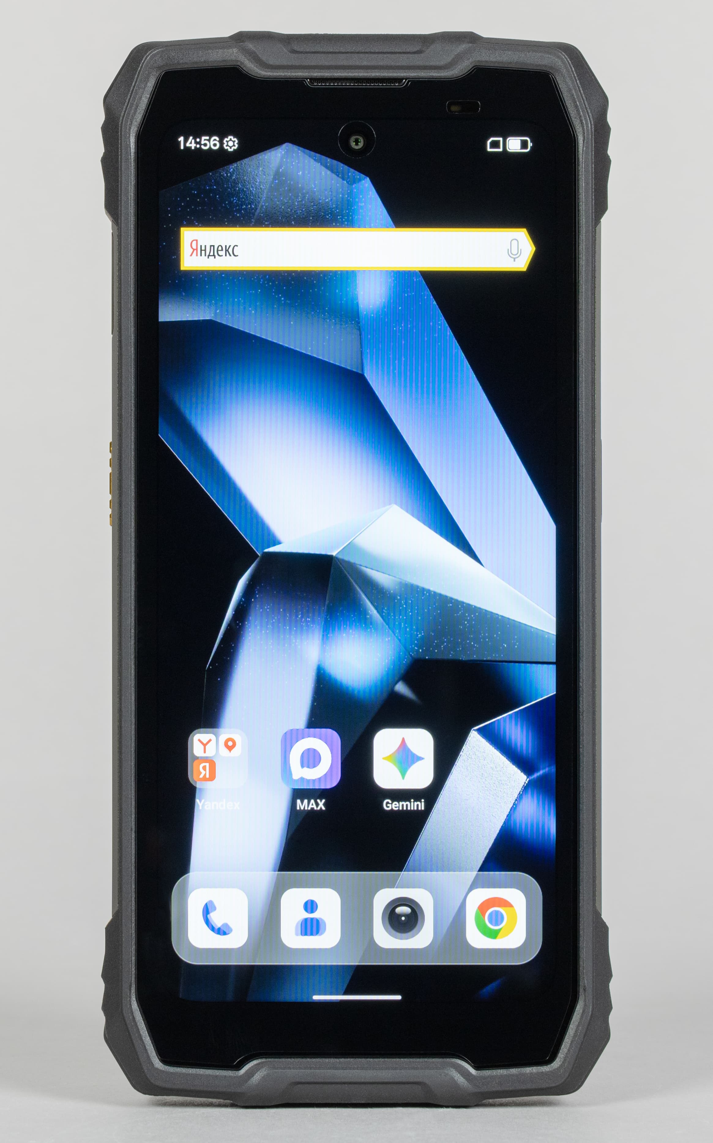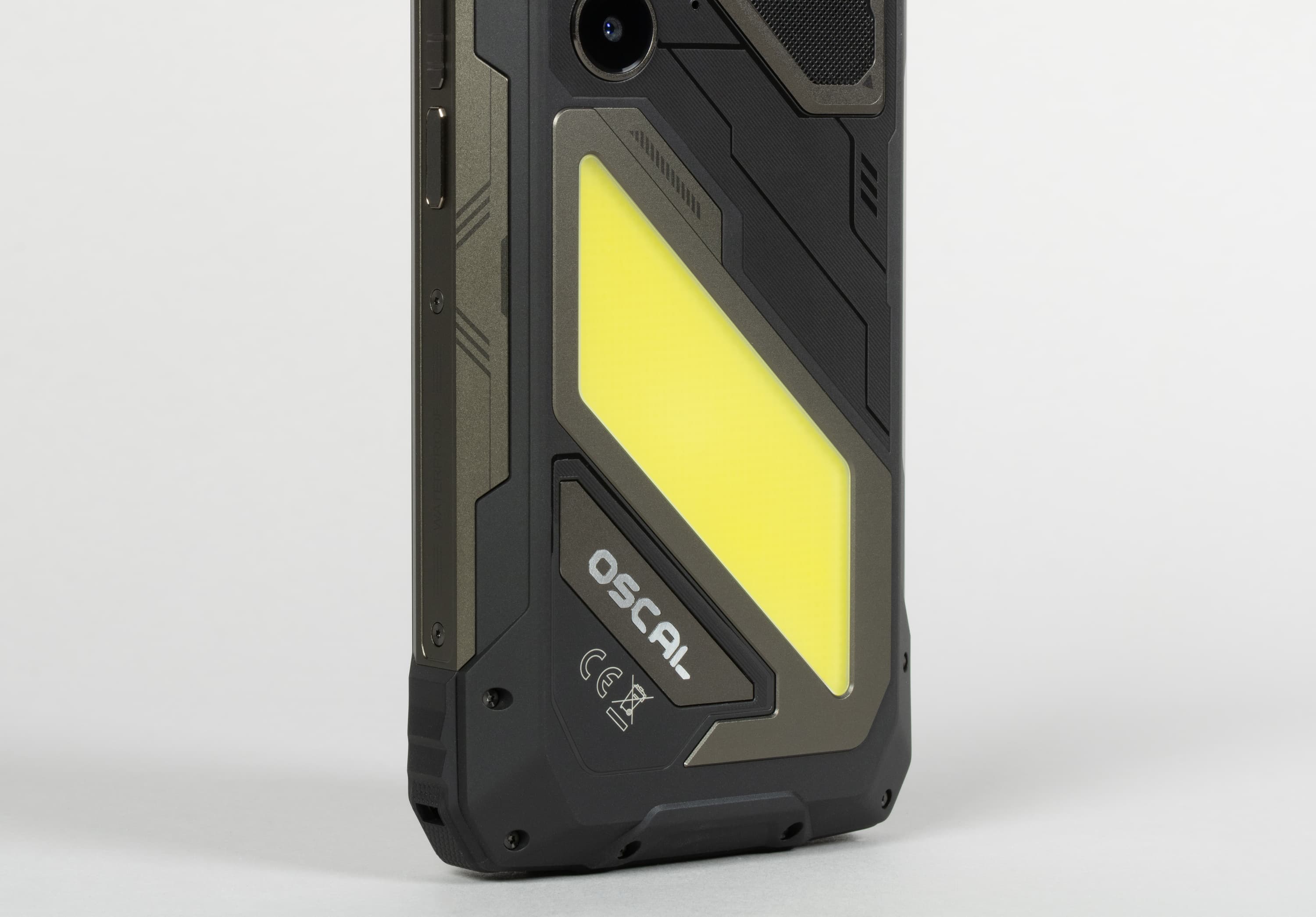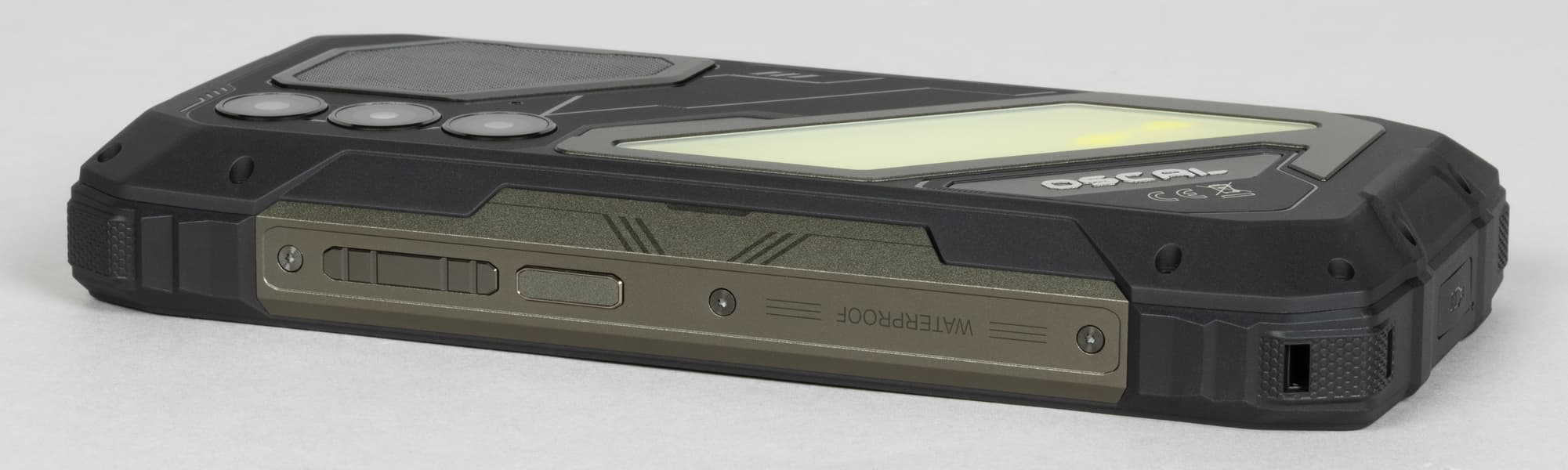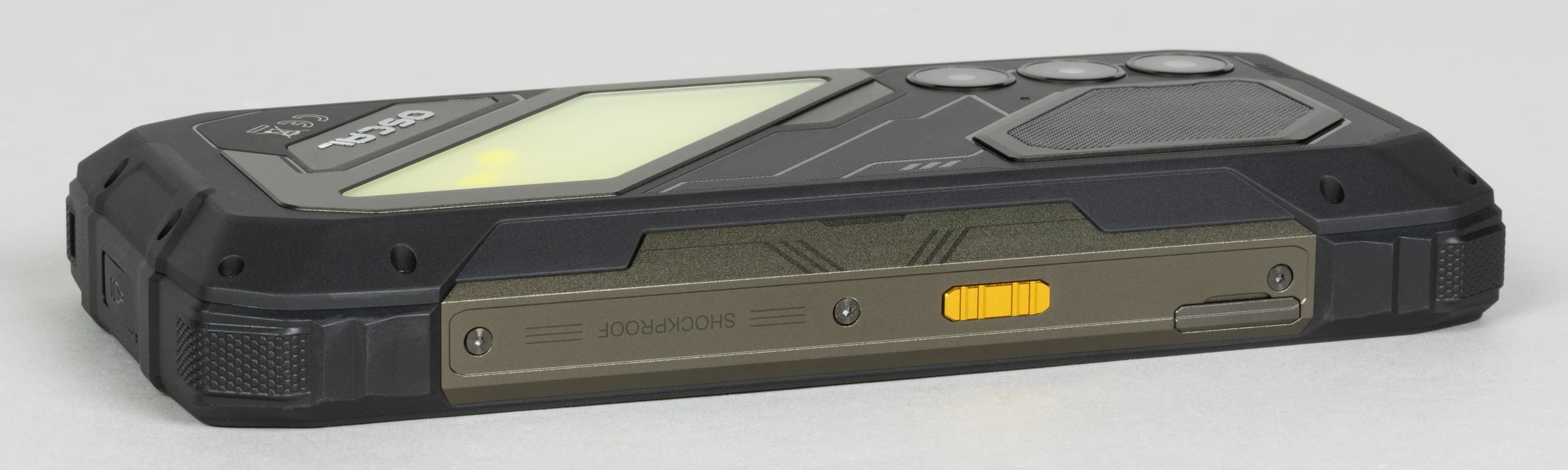 Хрупкая электронная начинка здесь надежно защищена от воды, грязи, ударов и падений толстыми прорезиненными стенками. Корпус отвечает требованиям стандартов IP68 и IP69K, умея противостоять струям воды под давлением и полному погружению на глубину до 1,5 метров в течении получаса; соответствует армейскому стандарту долговечности MIL-STD-810H, вынося удары и падения с высоты до 1,5 метров и выдерживая высокие и низкие температуры. Экран защищает закаленное стекло Corning Gorilla Glass 5 с небольшим выступающим резиновым бортиком.