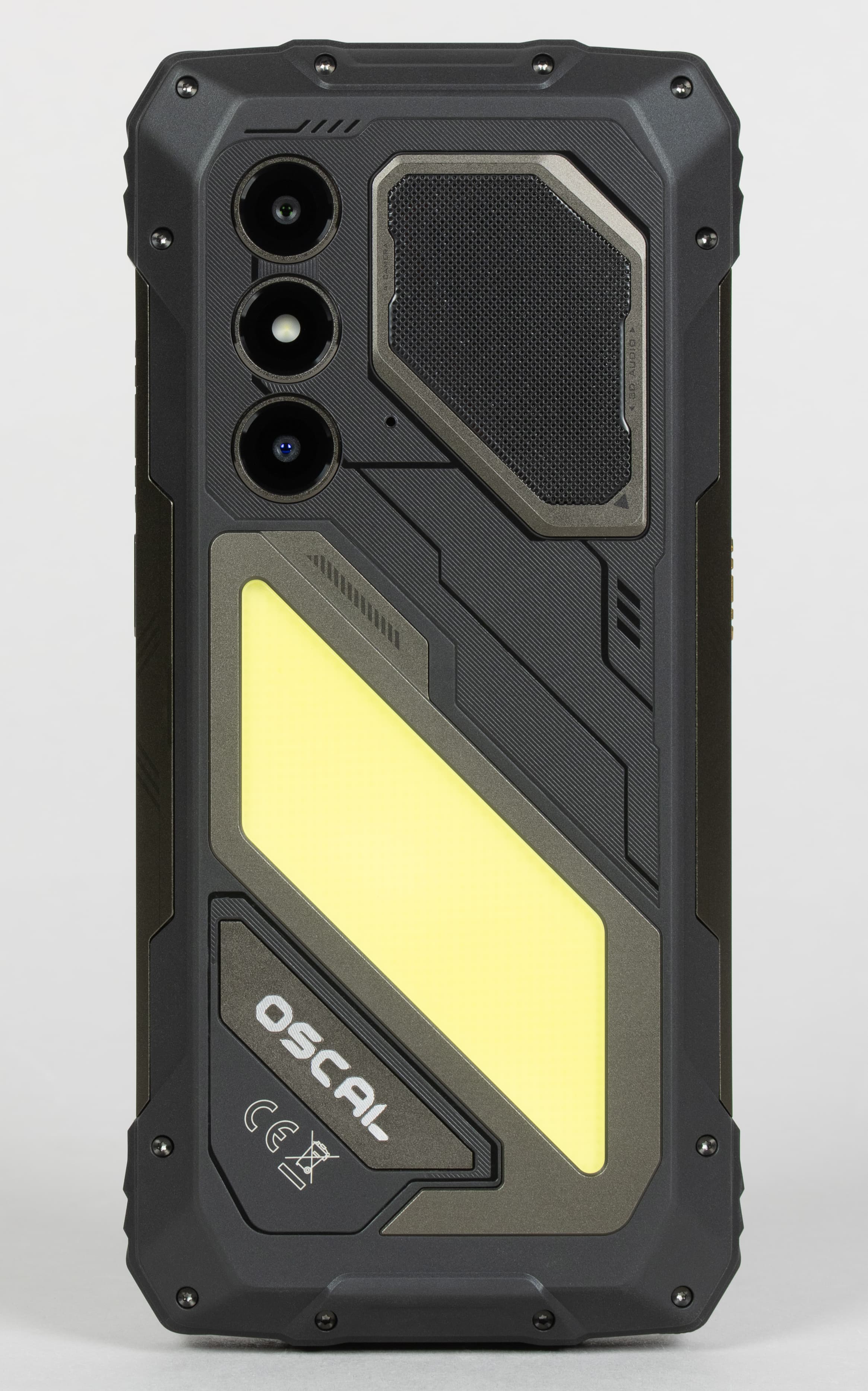 Oscal Pilot 5, как и подобает настоящему «броневику», имеет значительно большие, чем у стандартных смартфонов, габариты и массу. Аппарат весит более полукилограмма, имеет весьма объемный прорезиненный толстый корпус, который с трудом удерживается в руке на протяжении долгого времени.