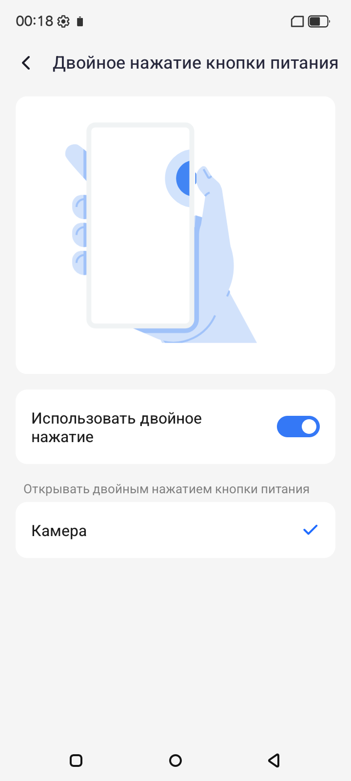 Отдельная программируемая кнопка позволяет задавать различные действия при одиночном и двойном нажатии и при долгом удержании. Функции выбираются из предопределенного списка в меню настроек.