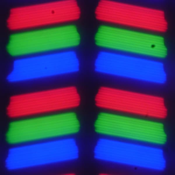 В данном смартфоне используется матрица типа IPS. Микрофотографии демонстрируют типичную для IPS структуру субпикселей: