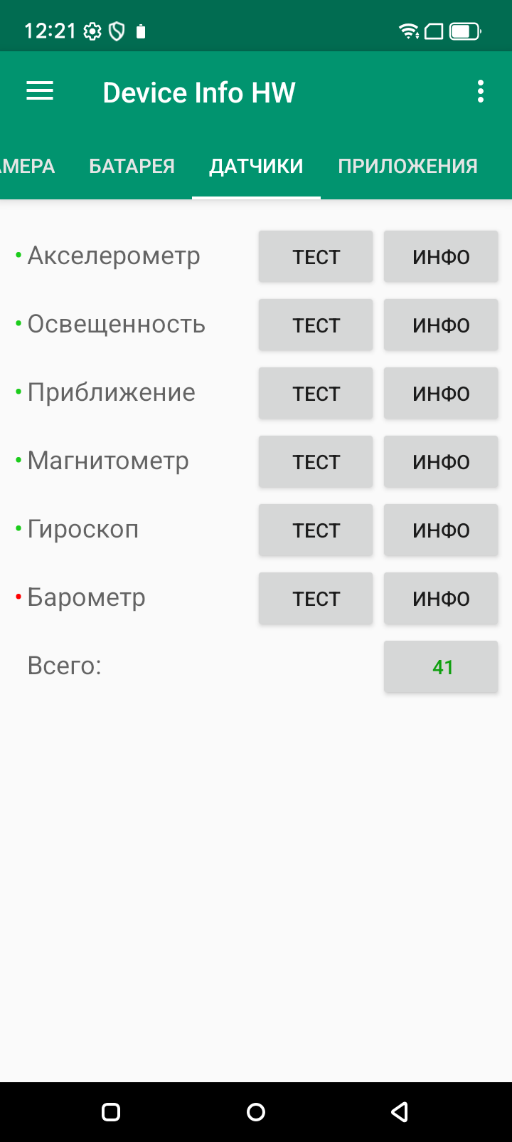 - Датчики приближения и освещения, магнитного поля, акселерометр, гироскоп