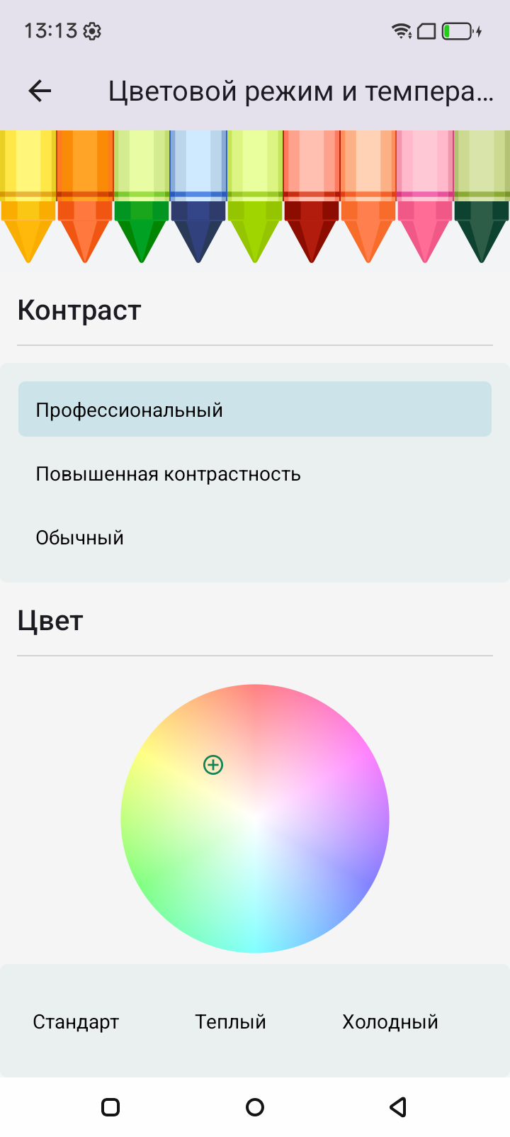 Фотография выше получена при активном профиле Профессиональный в настройках экрана, всего их три: