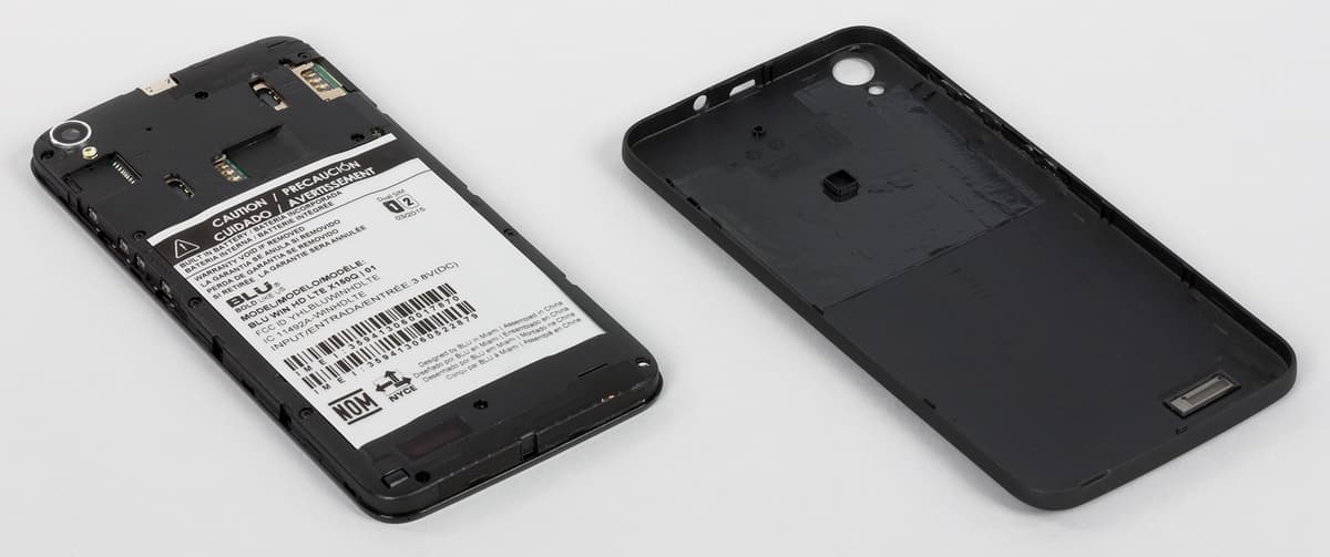 Данное устройство имеет съемную заднюю крышку, которая традиционно держится на защелках. Сама она изготовлена из крепкого и гибкого пластика, так что, скорее всего, прослужит достаточно долго. Под крышкой мы видим два слота для microSIM и слот для карты памяти microSDHC. Использовать nanoSIM с адаптерами с данным аппаратом мы бы не рекомендовали из-за конструкции слотов. Что касается батареи, то она закрыта информационной наклейкой, удаление которой приводит к нарушению гарантии. Заметим, что внутренний пластик основного корпуса производит хорошее впечатление.
