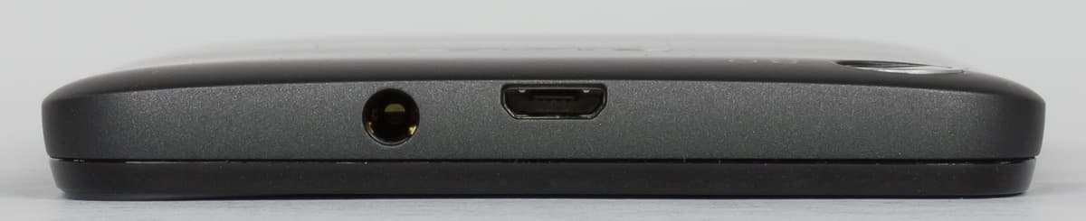 На нижнем видно только углубление для снятия крышки. В центре верхнего торца установлен порт microUSB для зарядки и подключения к компьютеру. Несколько спорное решение с точки зрения использования в автомобиле или с док-станциями. Слева от него — стандартный джек 3,5 мм для гарнитуры. К сожалению, оба разъема никак не укреплены, так что желательно пользоваться ими очень внимательно, если хочется обеспечить длительный срок работы.