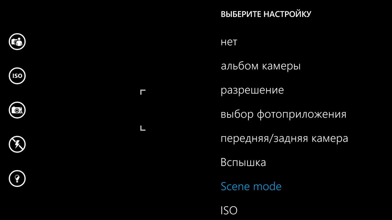 Среди них присутствуют в частности выбор ISO, баланс белого, коррекция экспозиции, разрешение, вспышка, выбор камеры, выбор сцены.