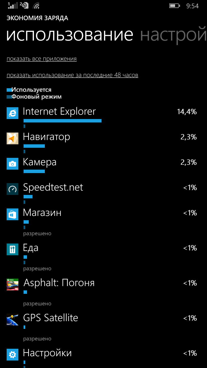 Смартфон показывает предупреждение при снижении уровня заряда батареи, а также имеет функцию экономии заряда, которая отключает некоторые второстепенные сервисы. Из настроек у нее — только выбор режима работы, выбрать конкретные действия и оптимизации нельзя. На отдельной странице можно посмотреть распределение потребления по приложениям за день, два дня или неделю.