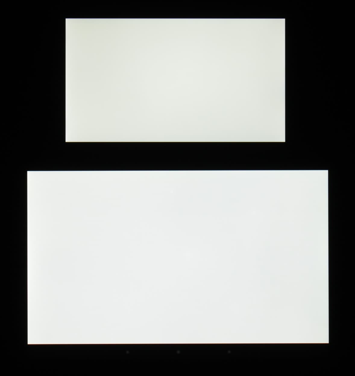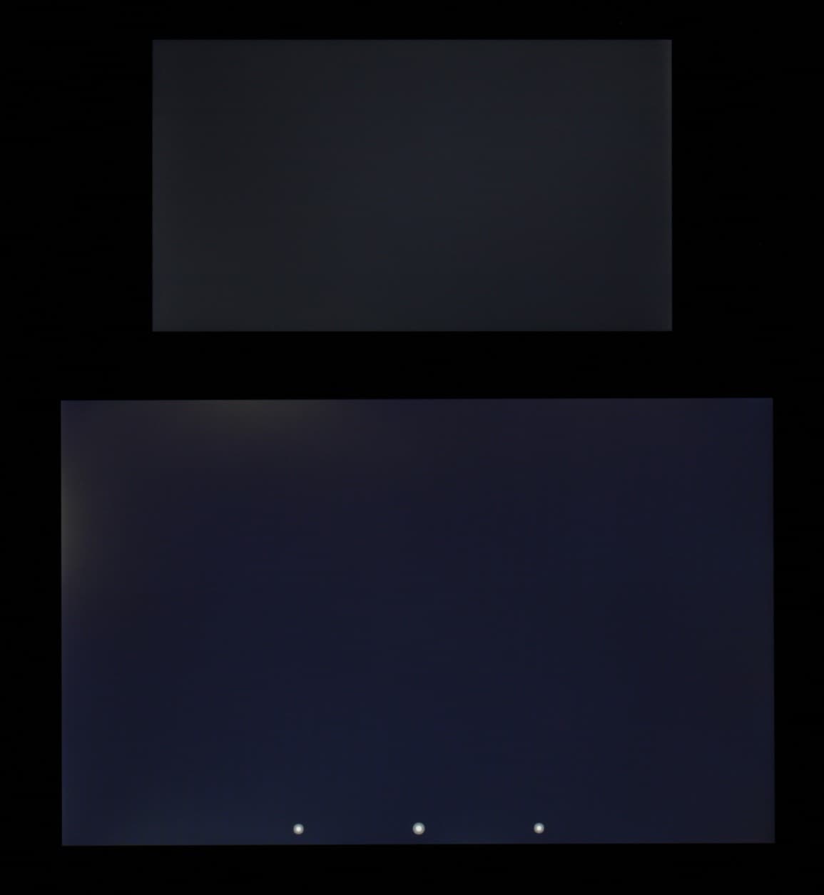 При перпендикулярном взгляде равномерность черного поля очень хорошая, только вдоль одного края есть узкая полосочка с немного повышенной яркостью: