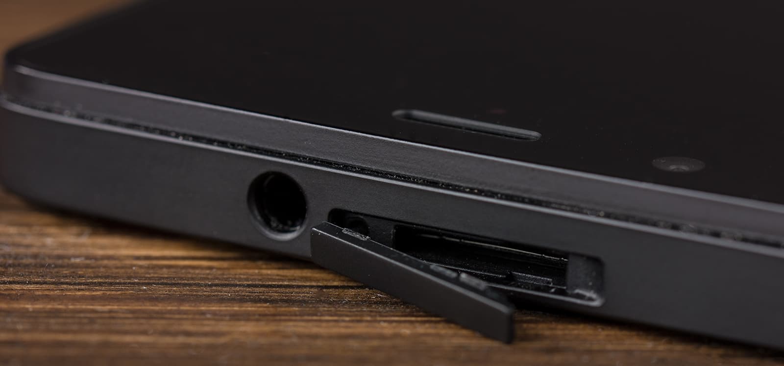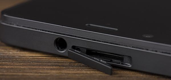 На верхней грани разместились гнездо 3,5 мм для гарнитуры и слот для карт памяти microSD, защищенный заглушкой. Теоретически ее надо открывать, поддевая ногтем, но осуществлять это не получается — слишком плотно она сидит, поэтому приходится использовать подручные средства (ту же скрепку).