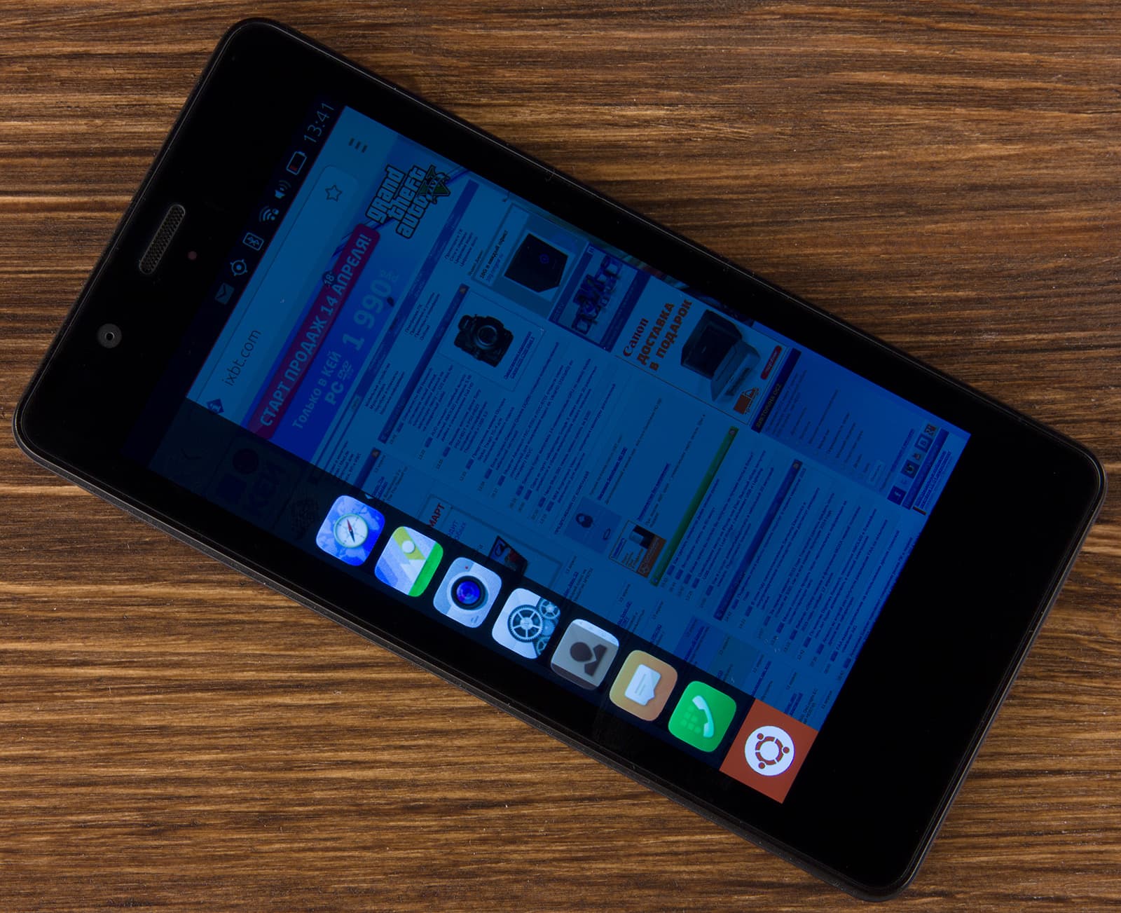 Заметим, что в режимах чтения и 3D-игр мы тоже не смогли протестировать его: в первом случае здесь просто не нашлось ридера, а в браузере яркость экрана снижалась через некоторое время после бездействия (и никакими настройками это нельзя было отрегулировать); во втором же случае просто не оказалось 3D-игр для Ubuntu Touch.